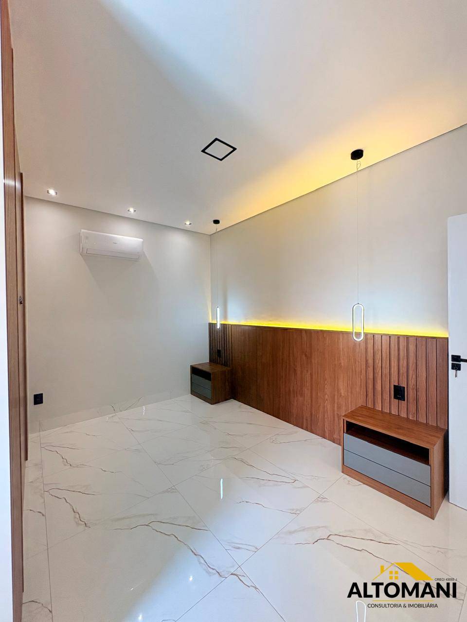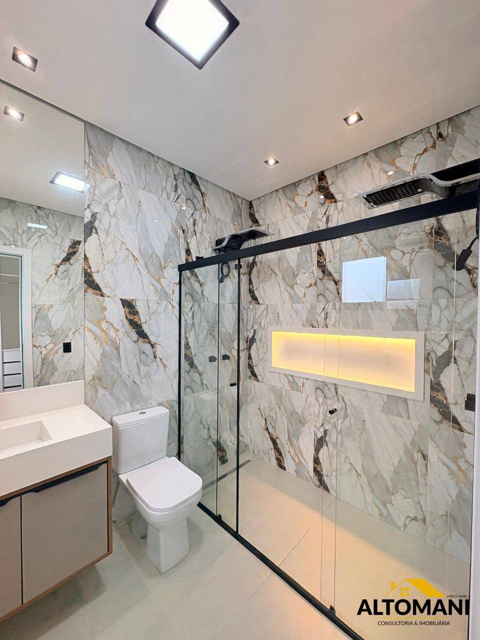 Suite master com ducha dupla, nicho com iluminação, Box nos banheiros